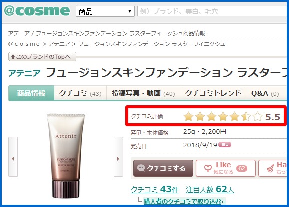 アットコスメでも★5.5と高評価です。