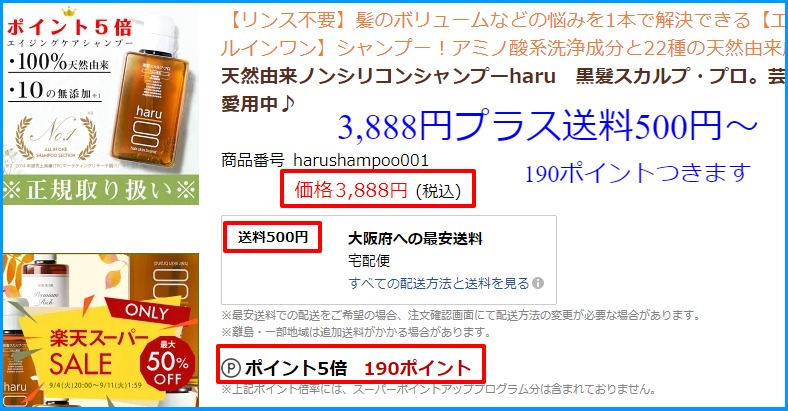 シャンプーの取扱もあり、定価の3,888円プラス送料で購入することが可能です。