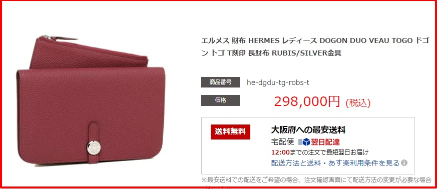 エルメスTOGOの財布を念のため楽天でも調べてみたところ、
