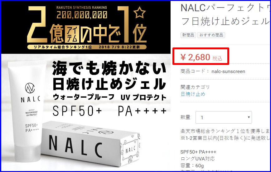NALC日焼け止めは、60gで2,680円で購入できます。