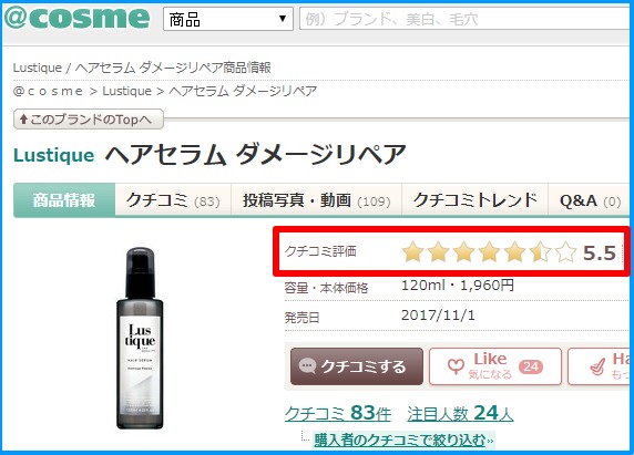 アットコスメで★5.5の高評価です。