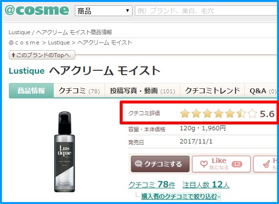 アットコスメでも★5.6と同じく高評価です。